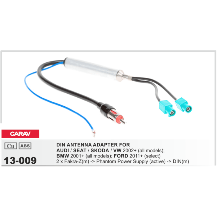 Антенний перехідник Carav 13-009 з підсилювачем для Audi, Seat, Skoda, Volkswagen, BMW, Ford