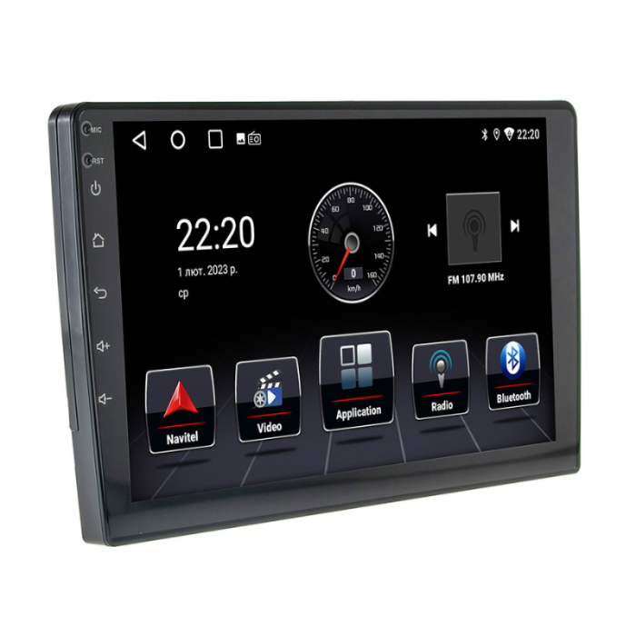 Універсальний мультимедійний центр планшетного типу на операційній системі Android 10, з сенсорним QLED екраном, 9 дюймів. Процесор 4х ядерний MediaTek MT8163 Cortex A53, 1.5ГГц. Пам'ять: 2Гб х 32Гб.